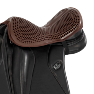 De technische samenstelling van de gel ondersteunt het bovenlichaam van de ruiter en vermindert de impact op het bekken en de onderrug bij abrupte bewegingen. De Gel-Out bovenzijde biedt daarbij extra grip en stabiliteit, wat deze uitvoering bijzonder geschikt maakt voor beginnende ruiters of ruiters die behoefte hebben aan een stabiele zit.
