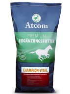ATCOM CHAMPION-VITAL is een compleet vitaminen- en mineralenvoer van premiumkwaliteit, speciaal ontwikkeld voor paarden in sport en training. Het voorziet in goed opneembare vorm in alle essentiële vitaminen, mineralen, sporenelementen en aminozuren die bijdragen aan vitaliteit, prestatievermogen en een gezonde stofwisseling. Dit voer ondersteunt voedingstechnisch de spieropbouw, het herstel en de algehele belastbaarheid van sportpaarden.