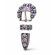 Deze copper buckle set is uitgevoerd met tanzanite blue rhinestones en geeft elk hoofdstel of accessoire een verzorgde en luxe uitstraling. De set bestaat uit een gesp, lus en punt, waardoor vervanging of vernieuwing eenvoudig mogelijk is.