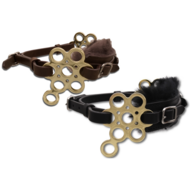 De neusriem is extra zacht gevoerd met echte schapenvacht. Dit voorkomt wrijving en drukplekken op het neusbeen en maakt deze hackamore geschikt voor paarden die gevoelig zijn aan de huid of snel schuurplekken krijgen. De kinriem en neusriem zijn gemaakt van echt leer. De gespen en scharen zijn uitgevoerd in roestvrij staal, wat zorgt voor sterkte en duurzaamheid. Het goudkleurige ontwerp geeft dit bitloze hoofdstel een luxe uitstraling.