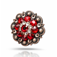 Deze hoogwaardige RHINESTONE concho met ruby-kleurige steen is ontworpen voor gebruik op western hoofdstellen, zadels, tassen en ander lederwerk. De diepe roodtint geeft jouw uitrusting een krachtige, luxe en professionele uitstraling, geschikt voor zowel dagelijks gebruik als showtack.