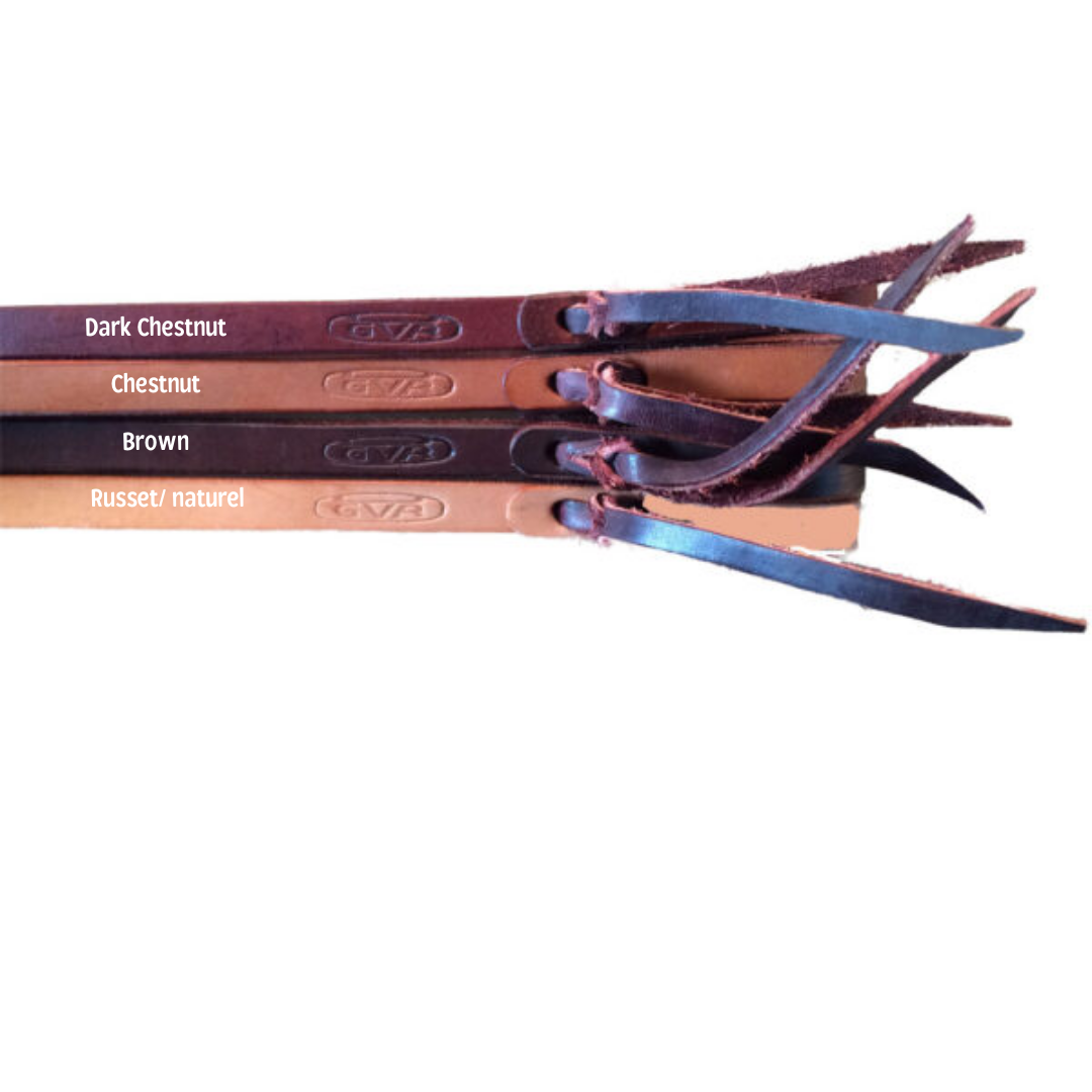 GVR leren teugels van Sadesa leer. Sterk en soepel uitgevoerd, 1/2 inch breed en 7-1/2 ft lang. Geschikt voor dagelijks gebruik.